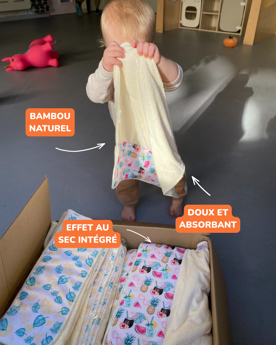 Made from untreated natural bamboo , it offers good absorbency and excellent breathability. When folded, it provides 12 absorbent layers , suitable for naps, long outings, and heavier needs.