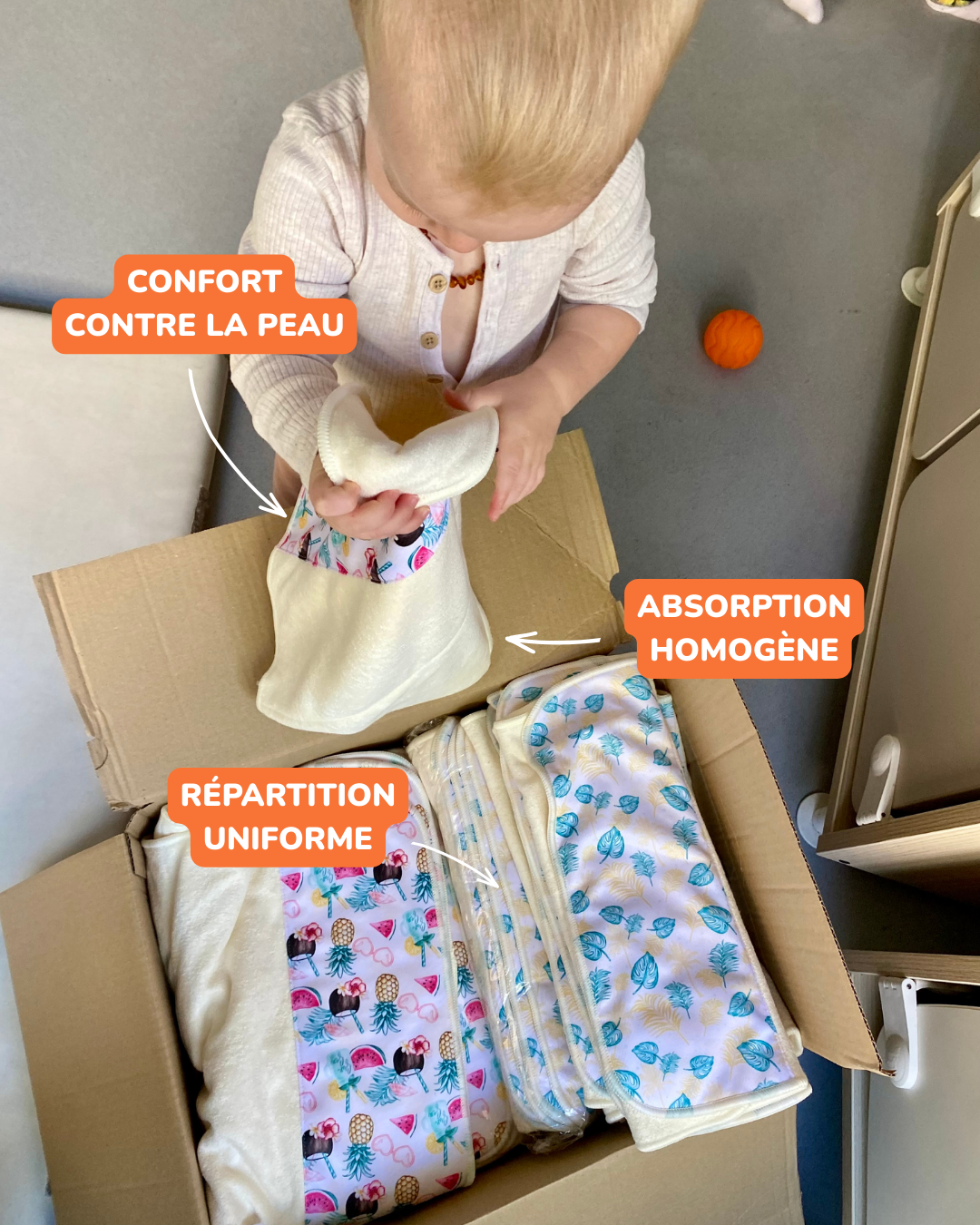 Its trifold format creates even absorption while maintaining great flexibility, ideal for TE2 washable nappies .